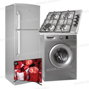 PACK ELECTROMENAGER : REFRIGERATEUR DP405 405L + MACHINE A LAVER 842S 6KG + PLAQUE DE CUISSON INOX EX410 4 FEUX + SMART TV 32 POUCES SIERA