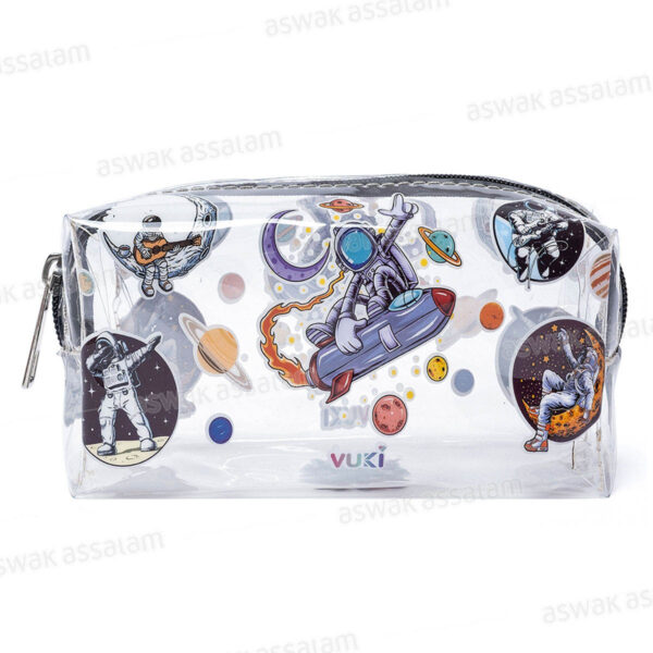 TROUSSE A CRAYONS A FERMETURE ECLAIR TRANSPARENTE MOTIF ASTRONAUTE 18,5*9*6CM VUKI